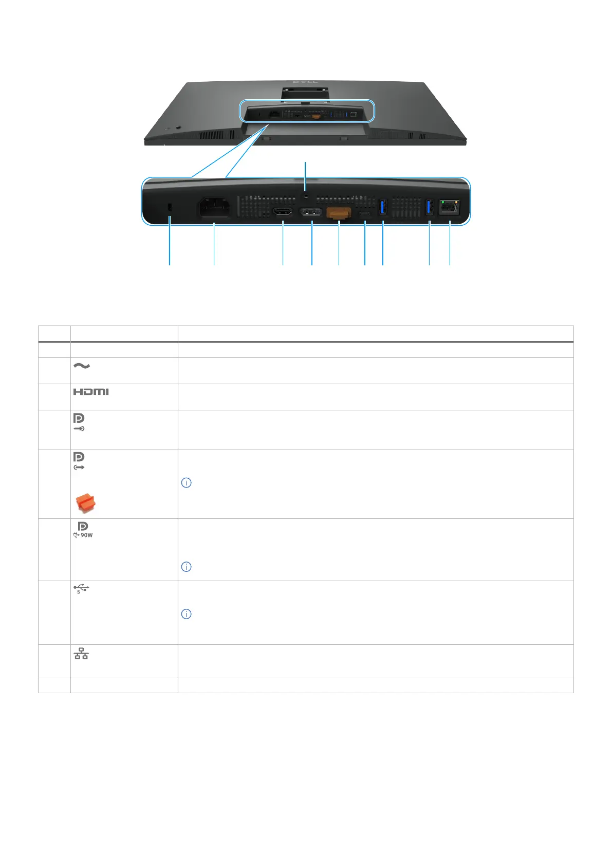 Security lock slot Secures the monitor with a security cable lock (sold separately).
