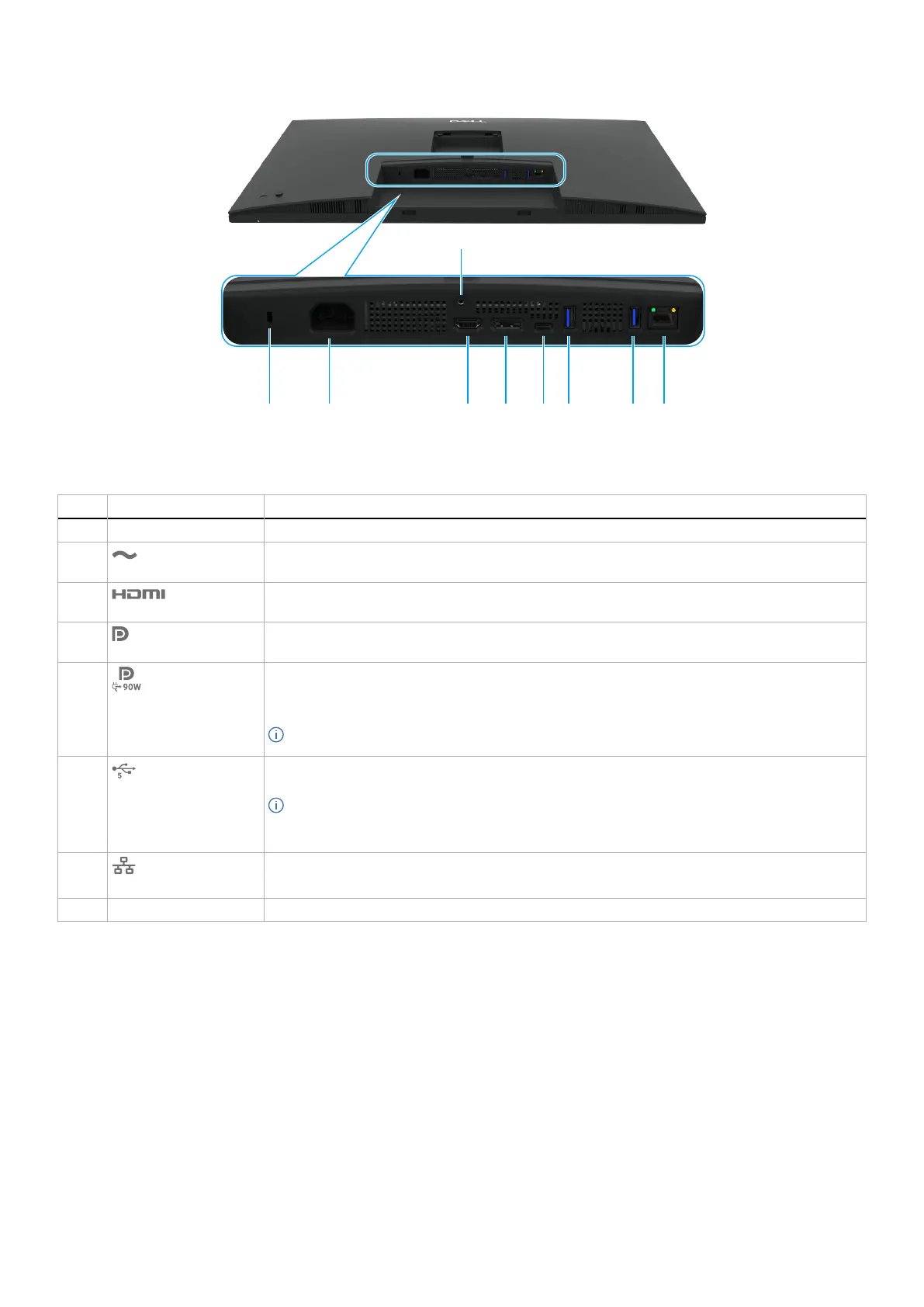 Security lock slot Secures the monitor with a security cable lock (sold separately).