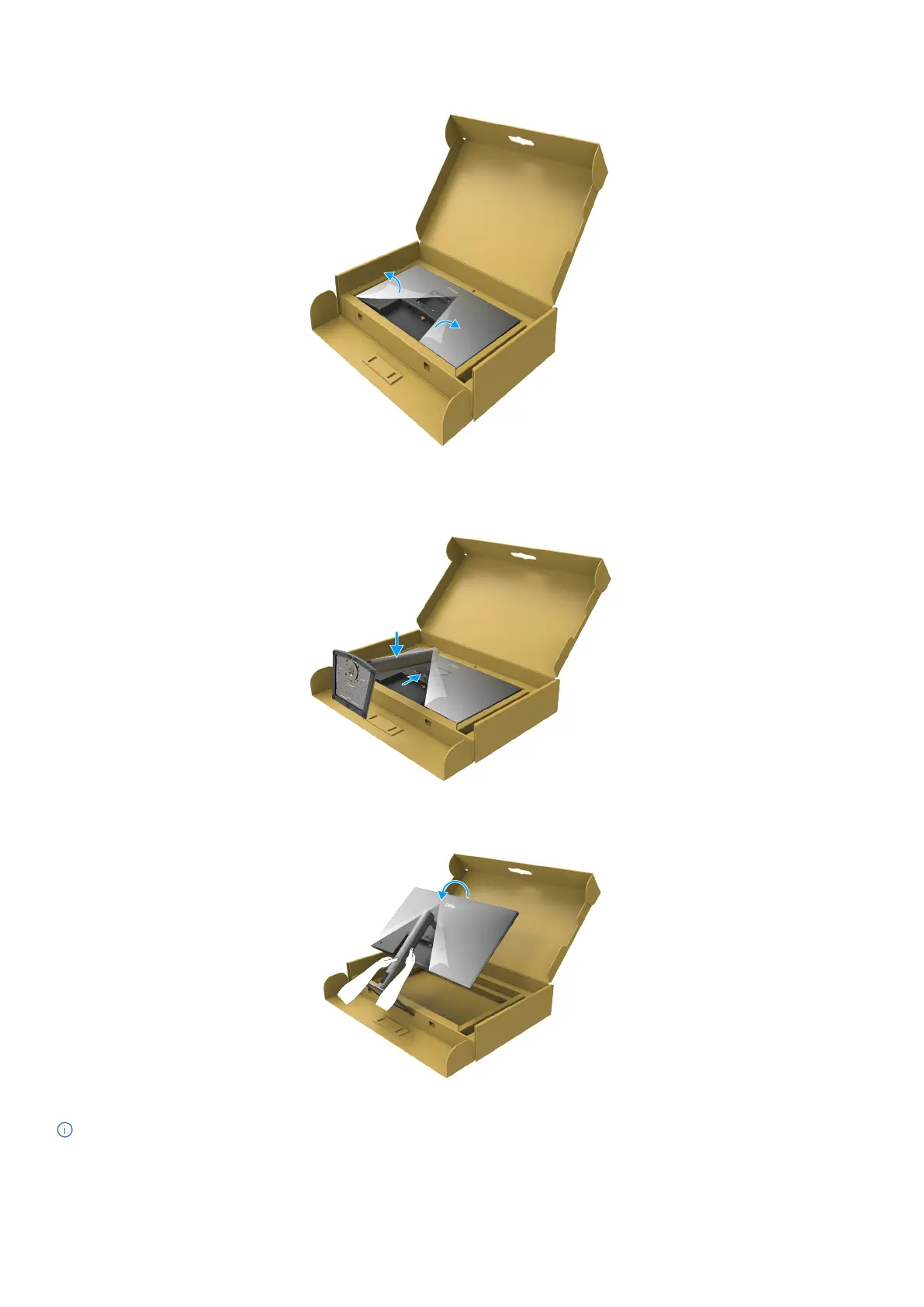 7. Hold the stand riser and lift the monitor carefully, then place it on a at surface.