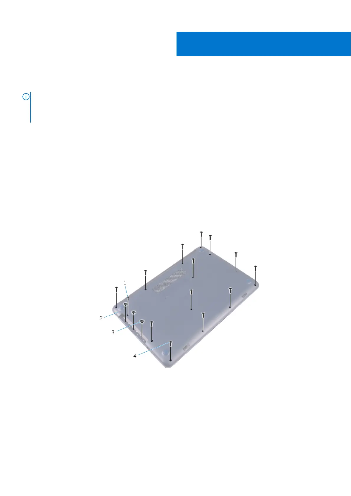 1. Remove the screws that secure the base cover to the palm rest and keyboard assembly.