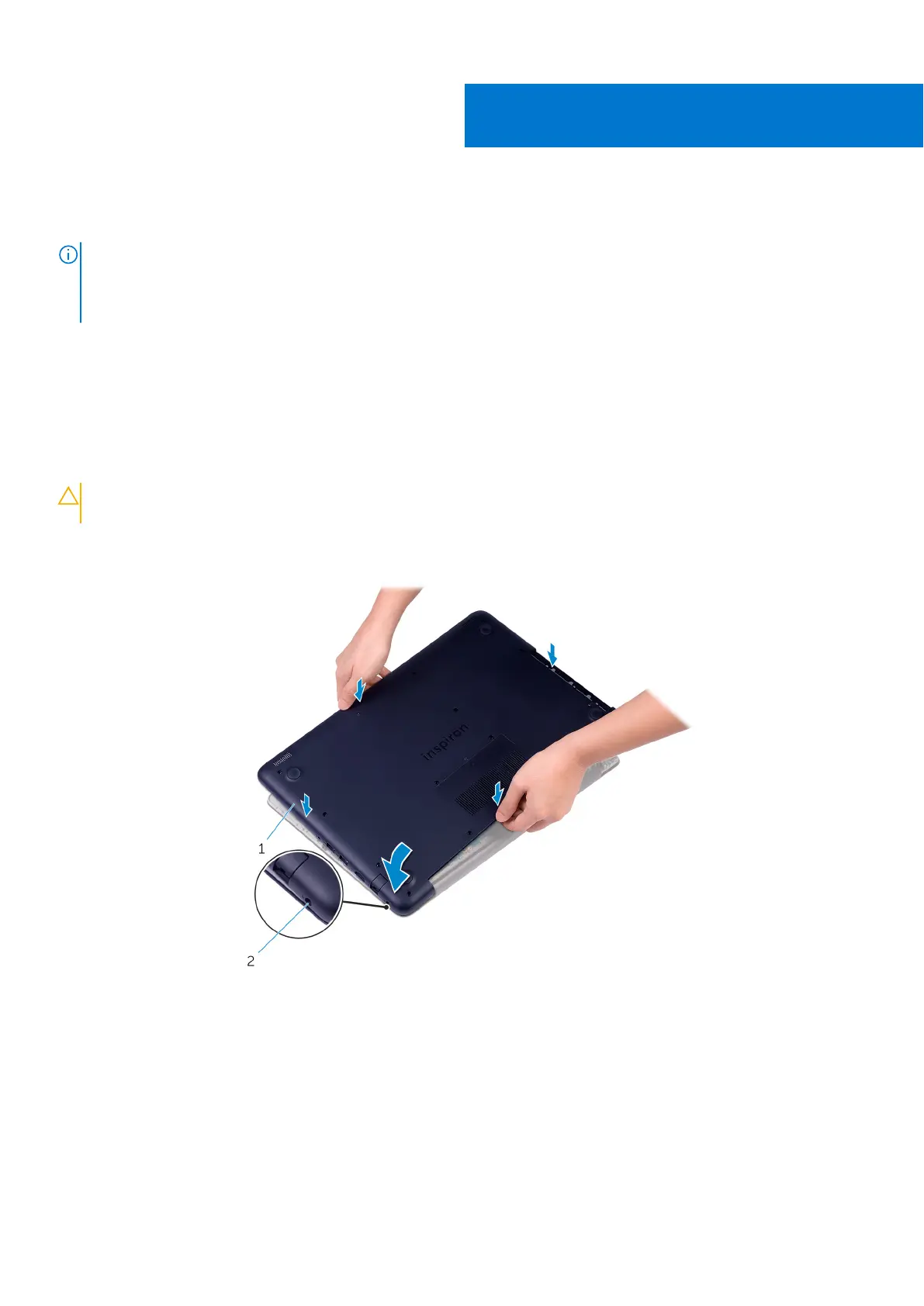 1. Place the base cover on the palm rest and keyboard assembly, and snap the base cover into place starting from the