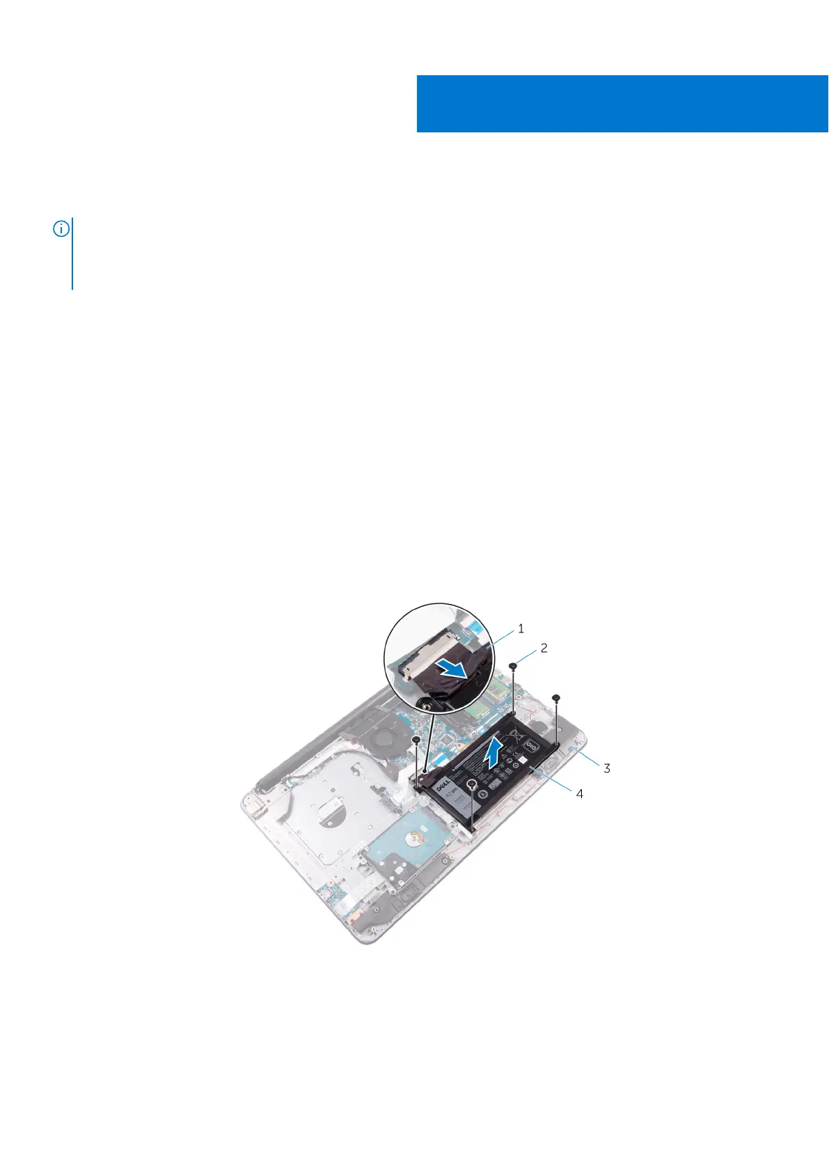 1. Remove the screws that secure the battery to the palm rest and keyboard assembly.