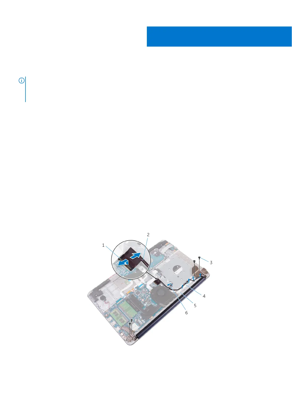 2. Peel off the tape that secures the display cable to the palm rest and keyboard assembly.