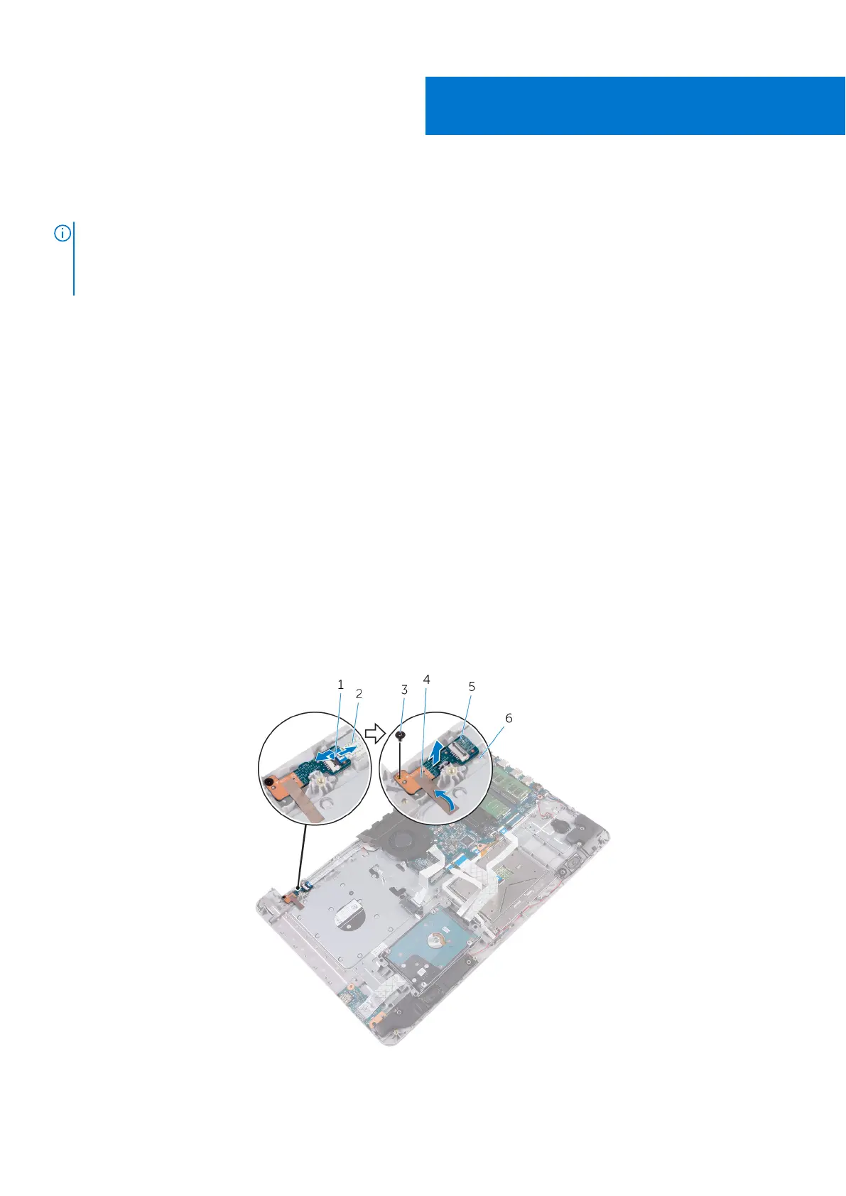 2. Remove the screw that secures the power-button board to the palm rest and keyboard assembly.