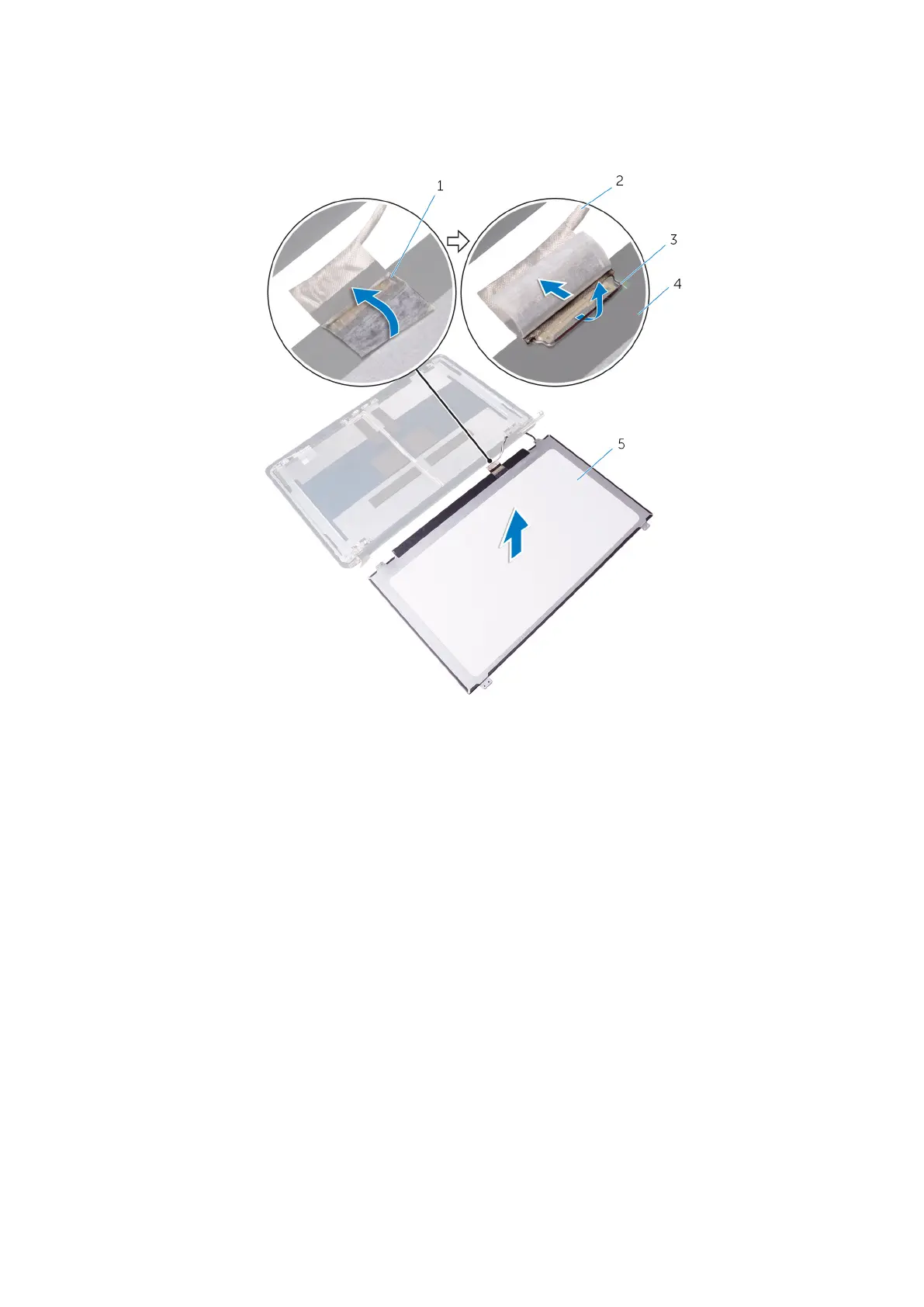 3. Gently peel the tape, then lift the latch and disconnect the display cable from the display-cable connector.