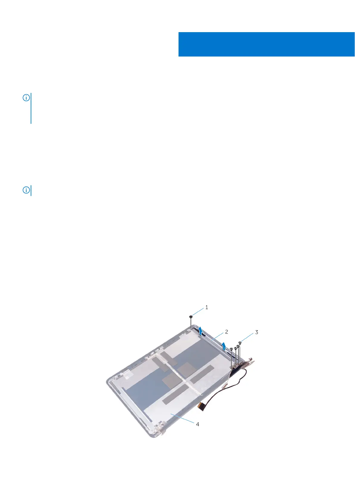 2. Lift the display hinges off the display panel.