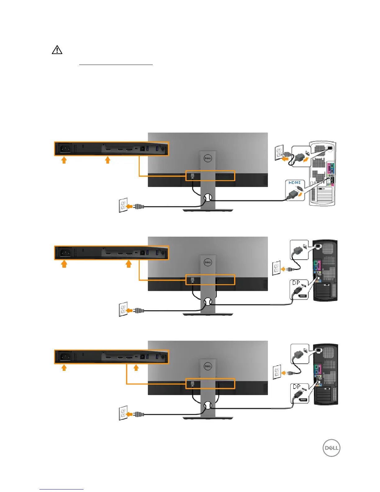 2. Connect the DisplayPort, Mini-DP to DP or HDMI cable to the corresponding