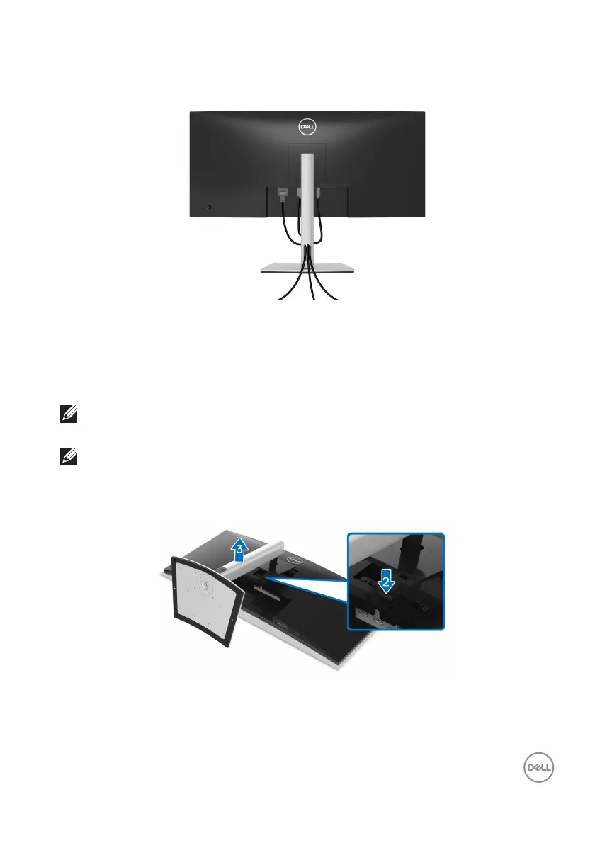 Connecting your monitor for cable attachment,) organize all cables as shown
