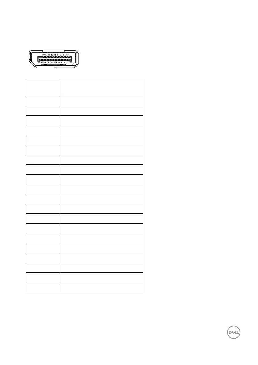 Dell P3424WE - Connector and Interface Details; Pin Assignments; DisplayPort Connector