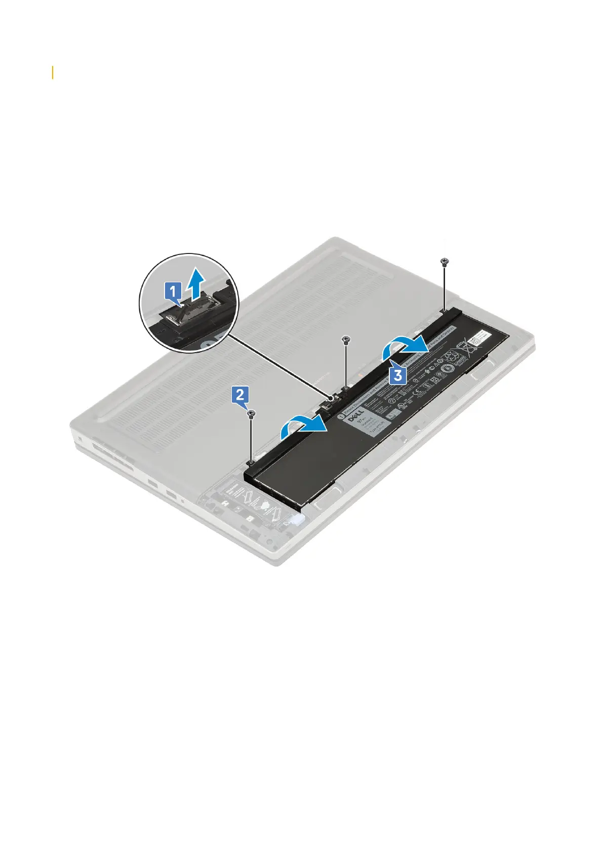 b. Remove the 3 (M2.5x3.0) screws that secure the battery to the system [2].