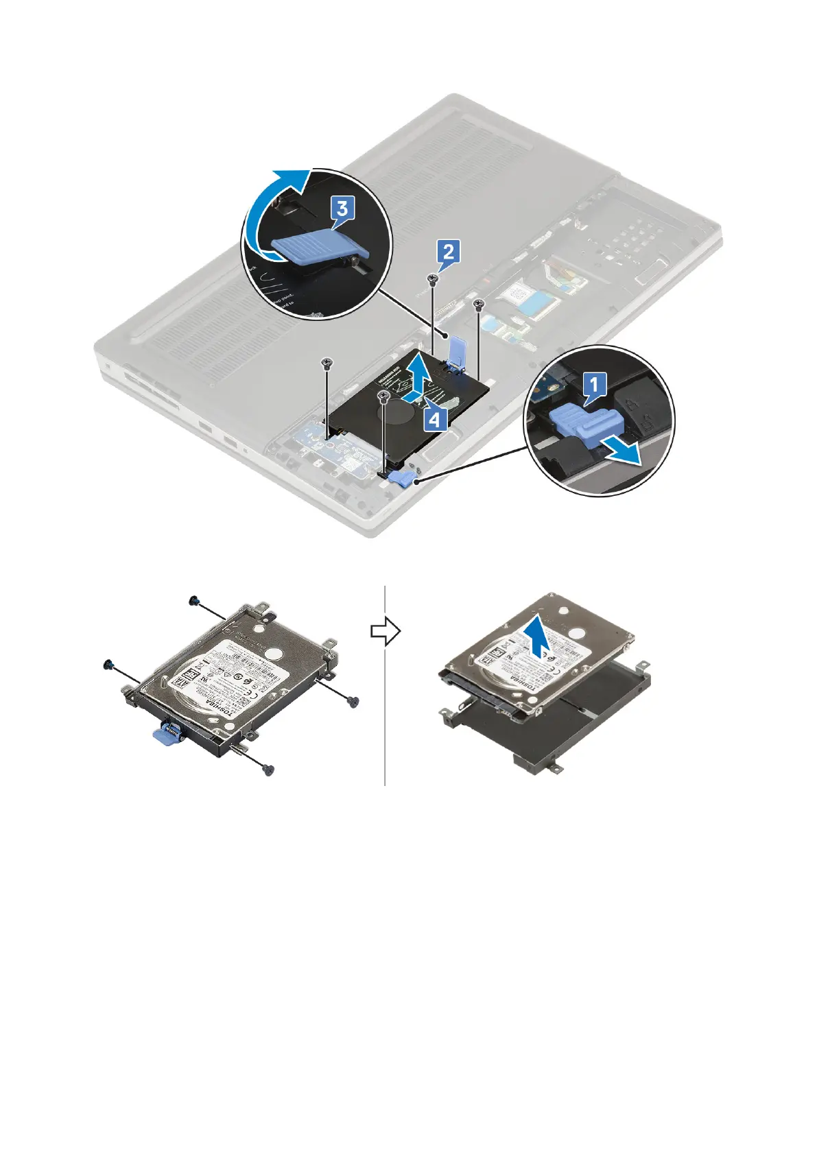e. Remove the 4 (M3.0x3.0) screws that secure the hard drive assembly to the hard drive bracket.