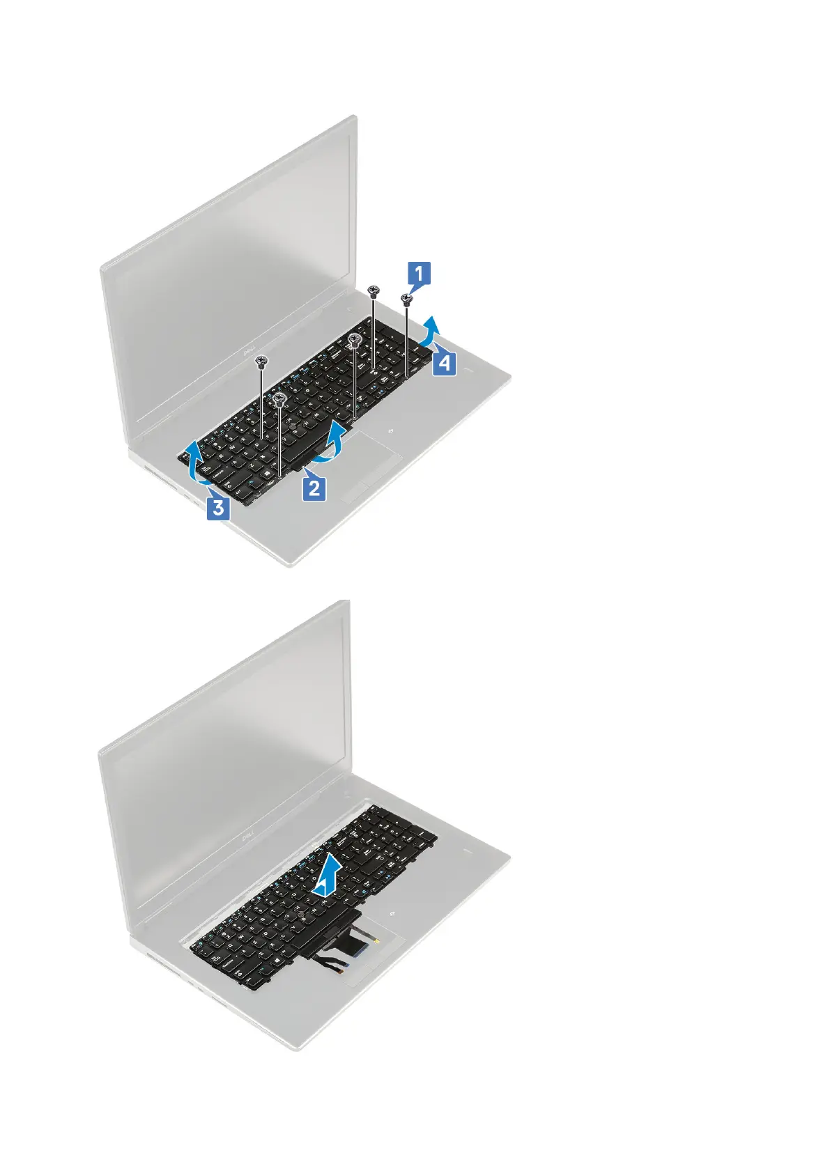 f. Pry the bottom edge of the keyboard and then work along the left and right sides of the keyboard [2,3,4].