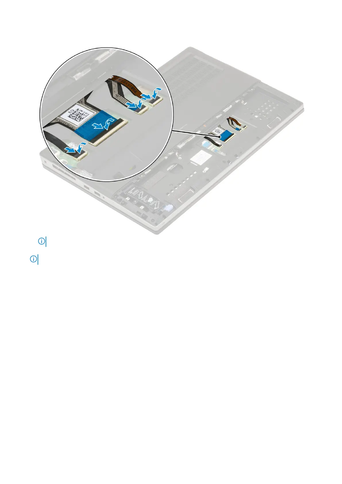 f. Connect the keyboard cable, fingerprint cable and fingerprint button cable to the connectors on the system board.