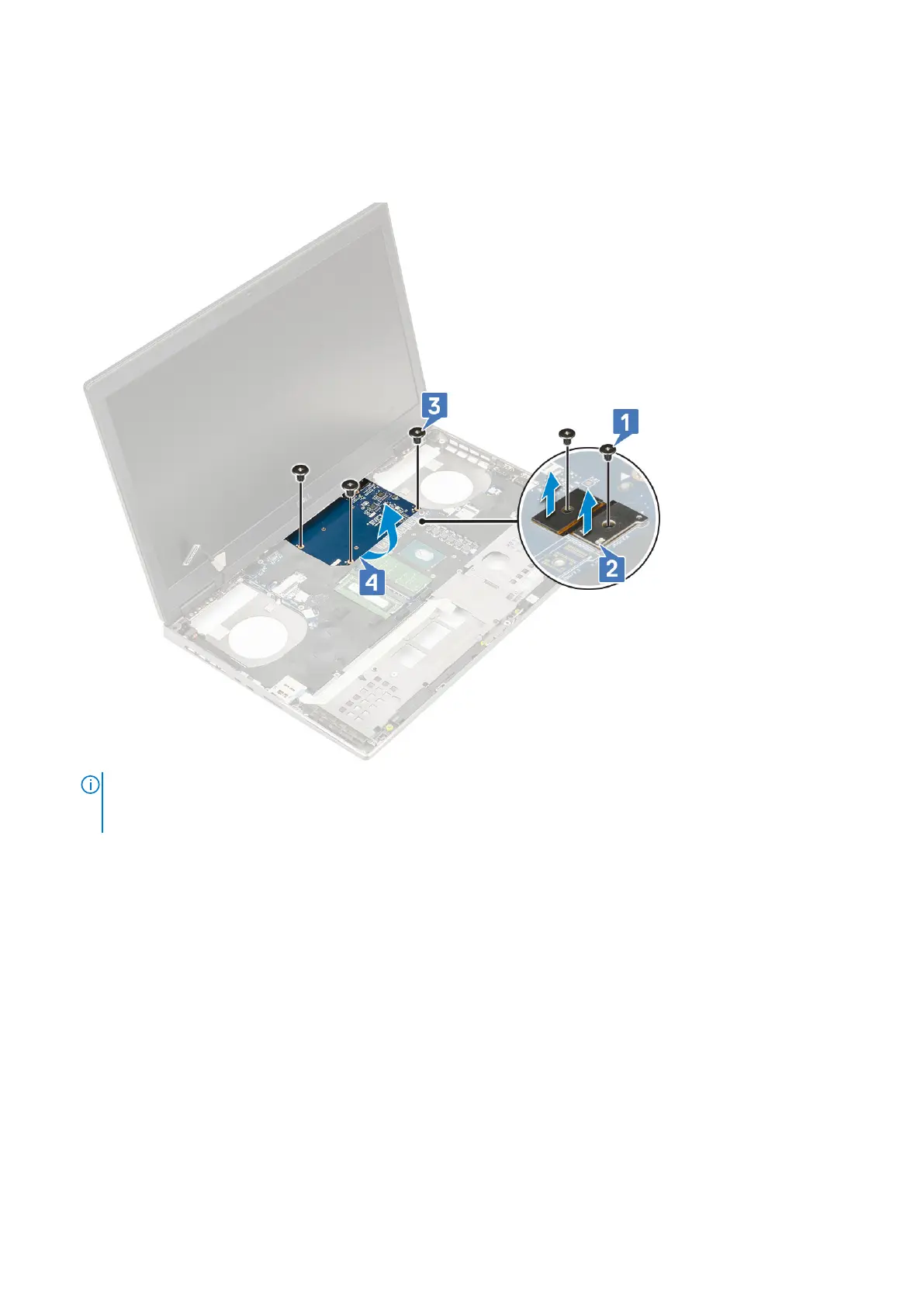 c. Remove the 3 (M2.5x5.0) screws that secure the graphics card to the system board [3].