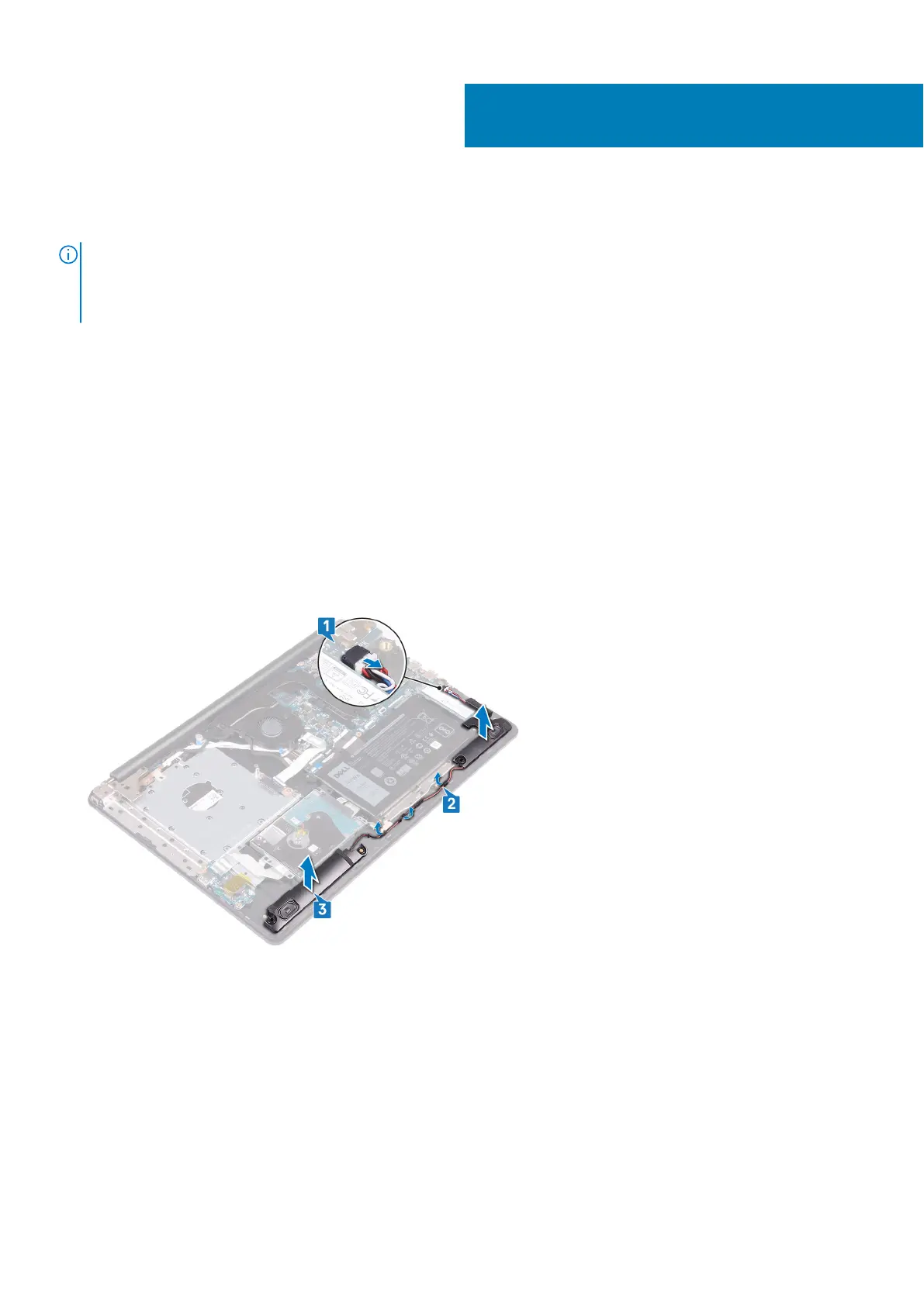 1. Disconnect the speaker cable from the system board and lift the right speaker off the palm rest and keyboard assembly.