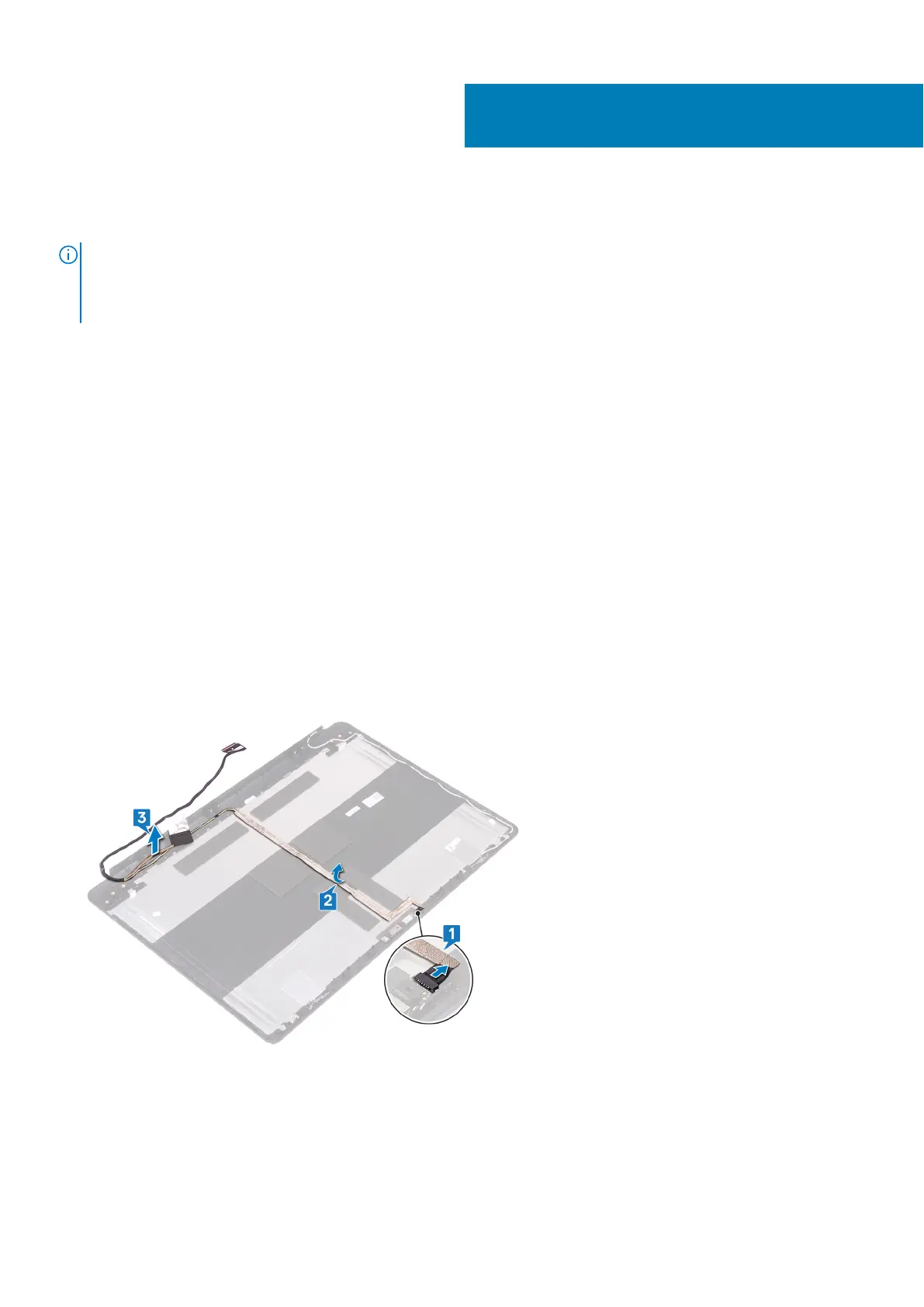 3. Remove the display cable from the display back-cover and antenna assembly.