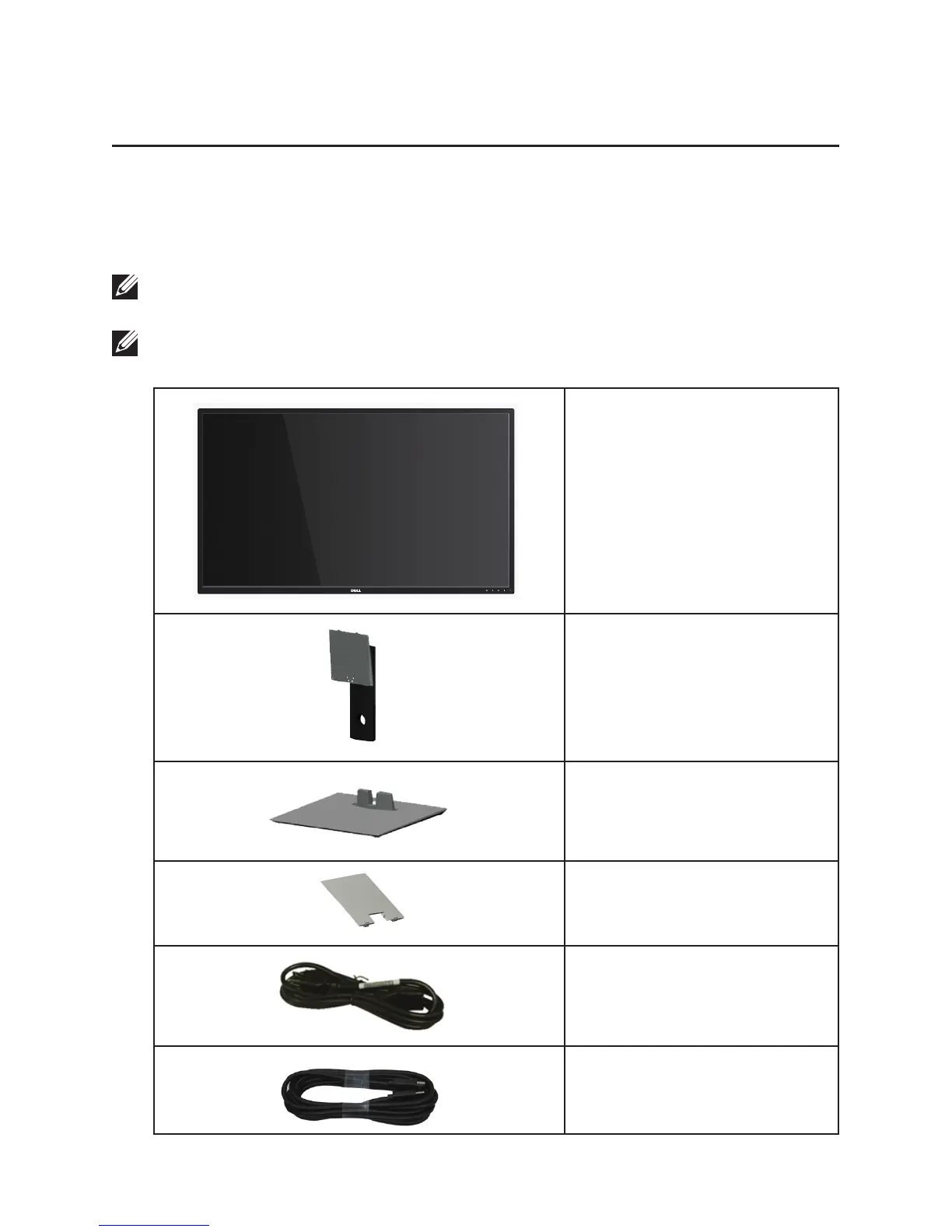 Your monitor ships with the components shown below. Ensure that you have