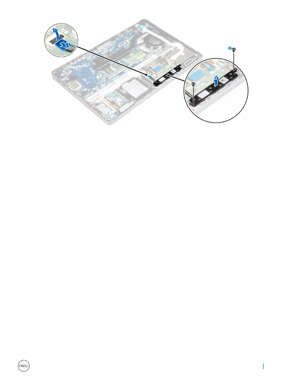 a Disconnect the SmartCard reader board cable from the USH board [1, 2].