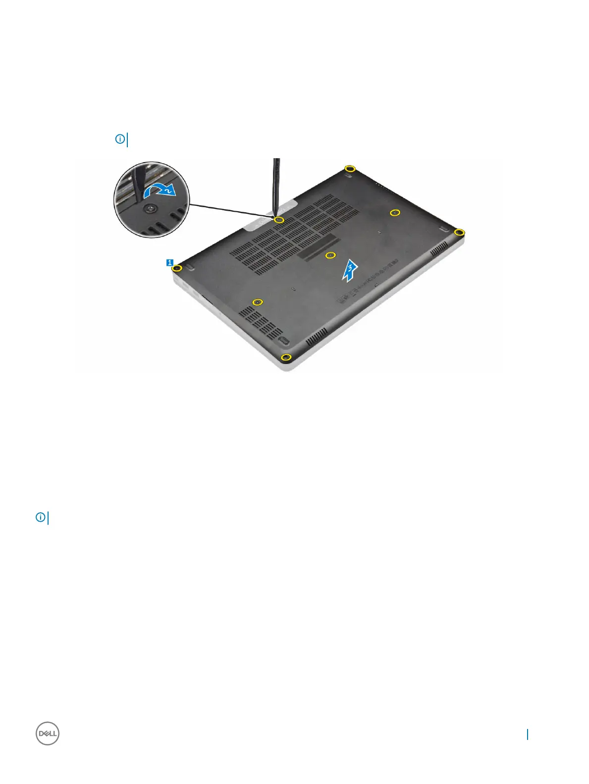 b Lift the base cover from the edge and remove it from the computer [2, 3].