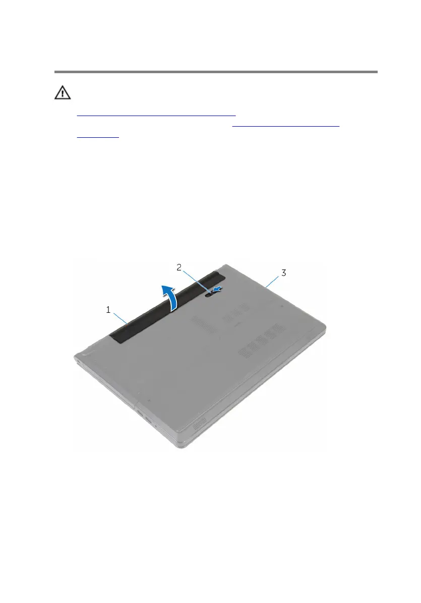 2 Slide the battery latch to the unlocked position.