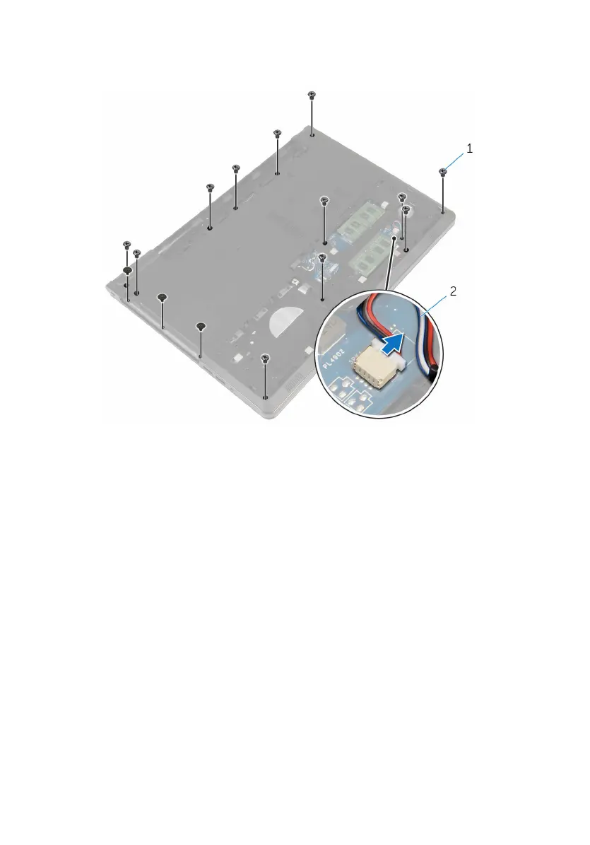 5 Remove the screws that secure the computer base to the palm-rest