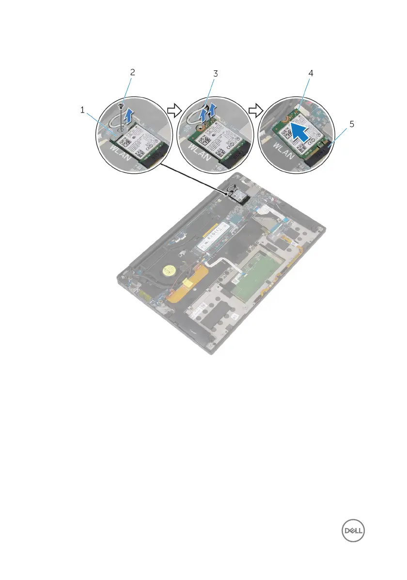 4 Slide and remove the wireless card out of the wireless-card slot.