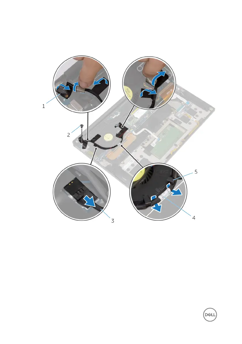 9 Note the display-cable routing and remove the cable from the routing guides on