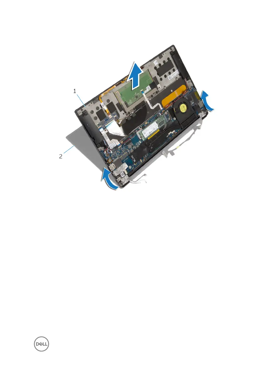 15 Slide and remove the palm-rest assembly from the display hinges.