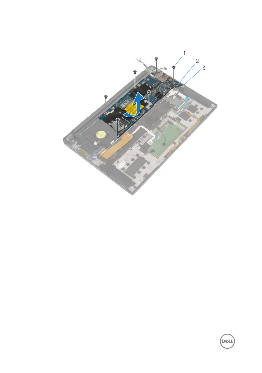 12 Starting from the outer edge, lift the system board at an angle to release it from