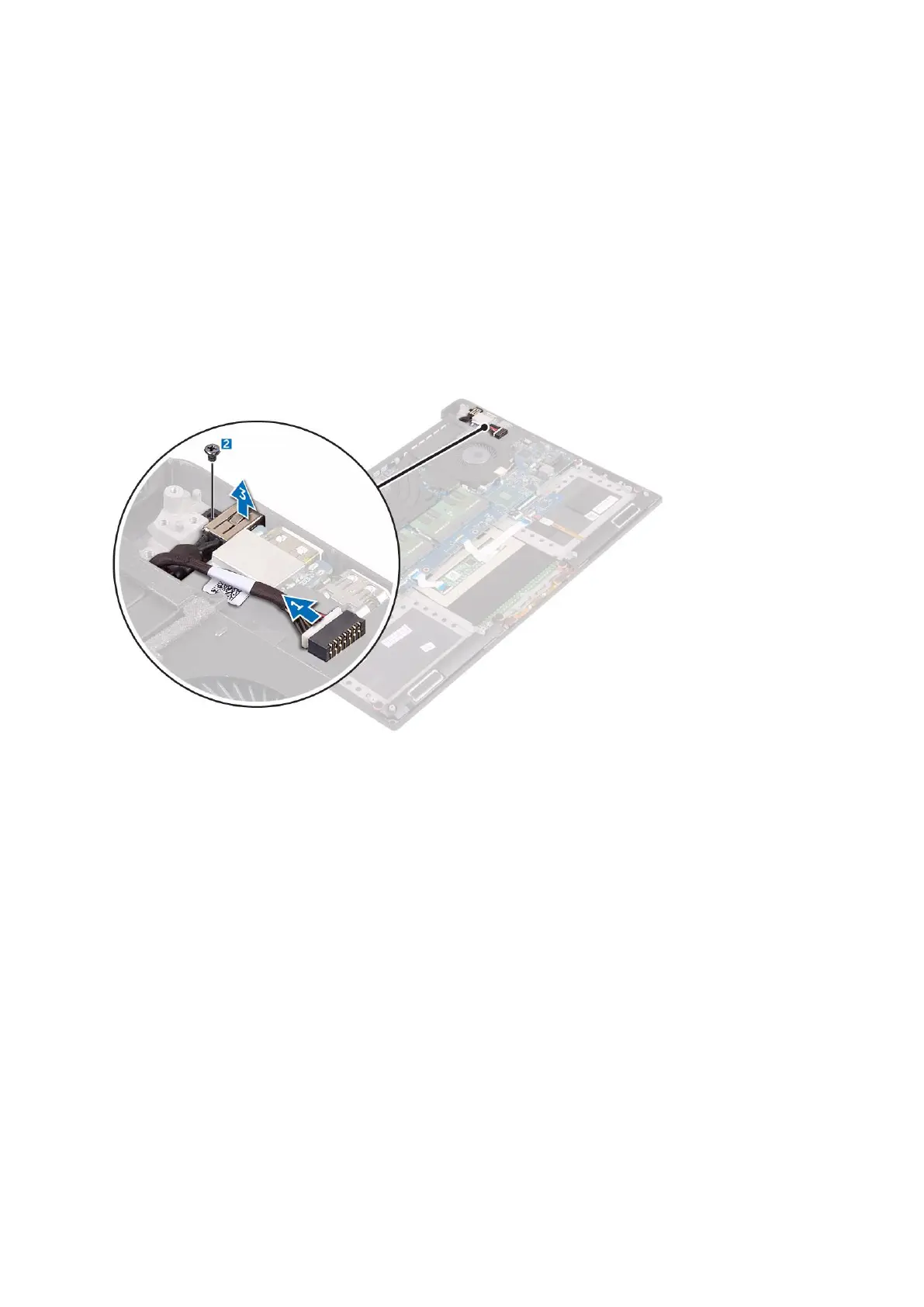 3. Replace the M2x3 screw that secures the power-adapter port to the palm-rest assembly.