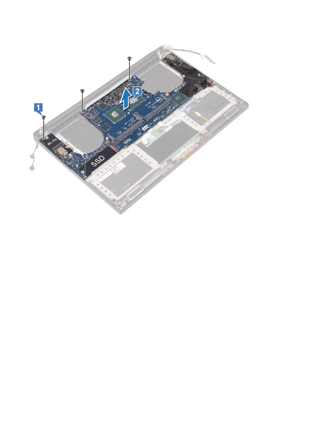 2. Replace the M2x4 (4) screws that secure the system board to the palm-rest assembly.