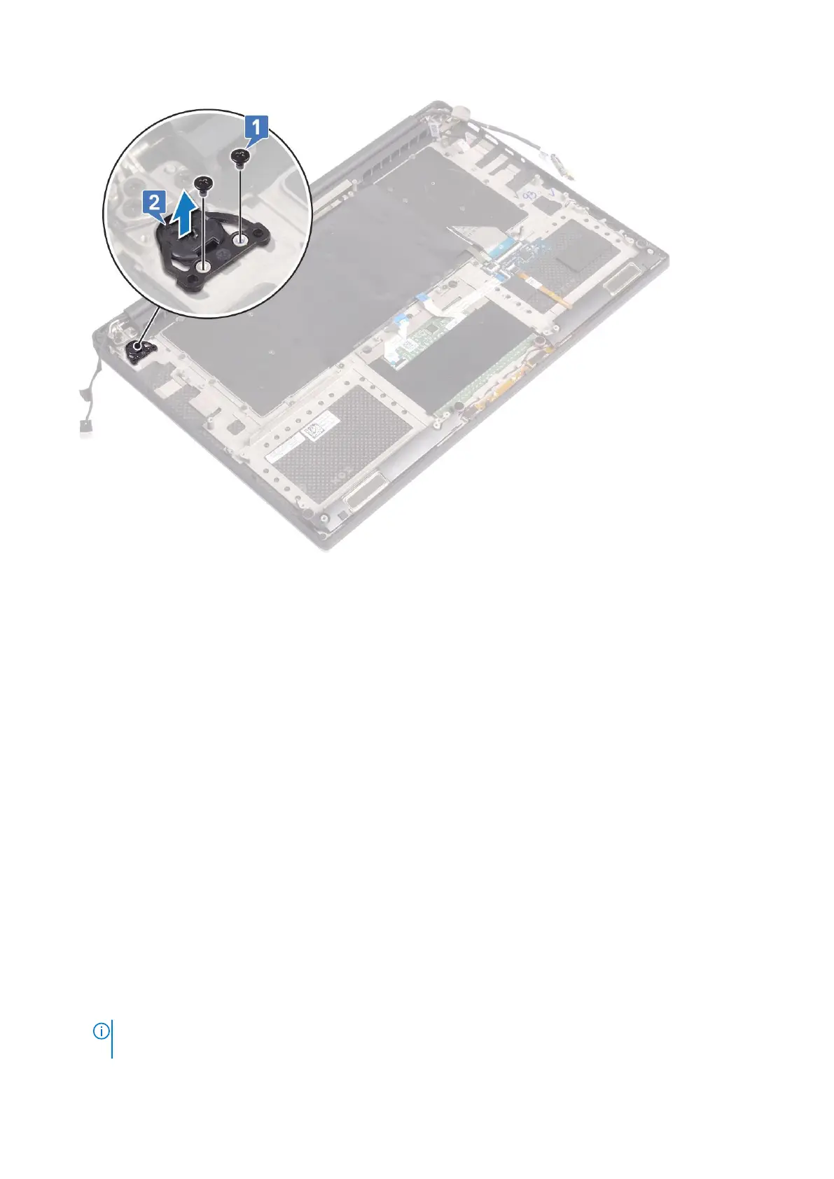 a. Remove the M1.6x3 (2) screws that secure the power button to the system board [1].