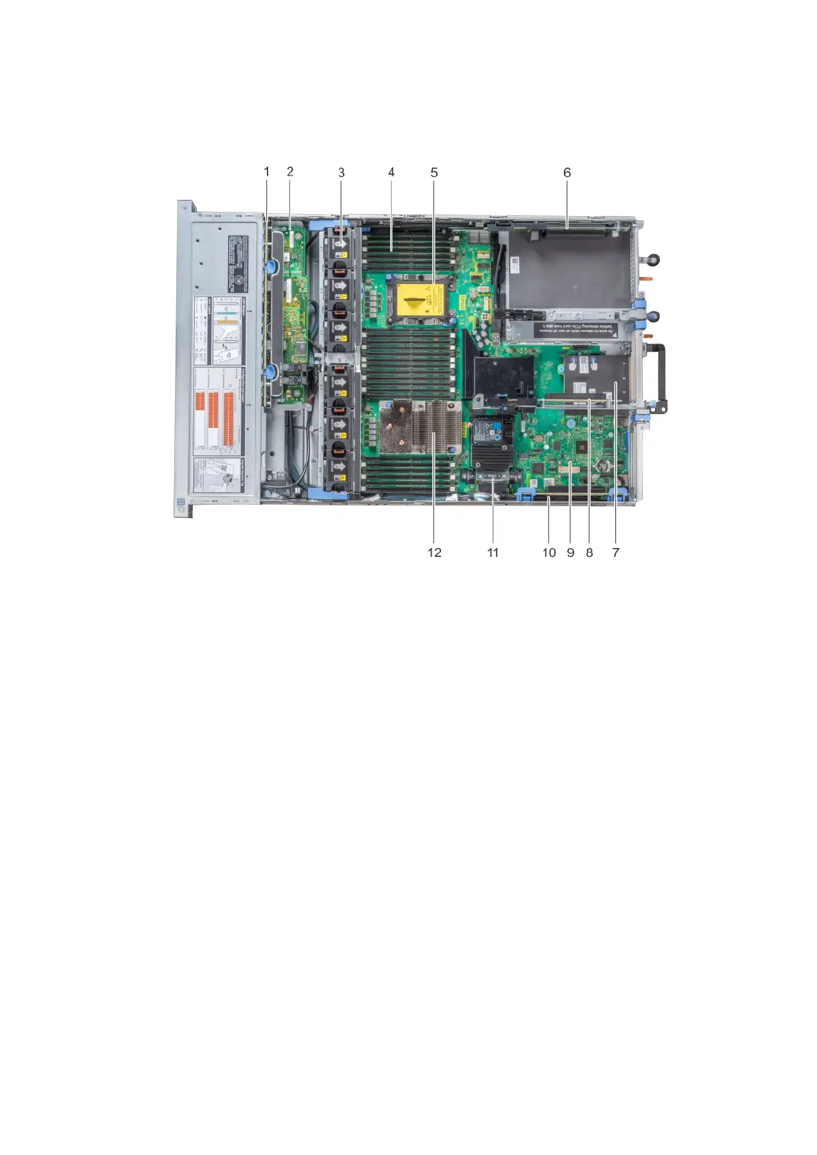 11. integrated storage controller card 12. CPU1 processor and heat sink module