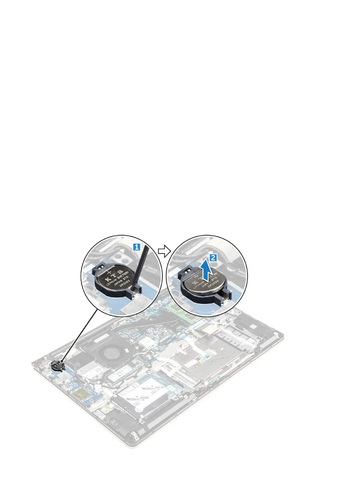 a. Pry the coin cell battery upwards from its slot using a scribe [1] .