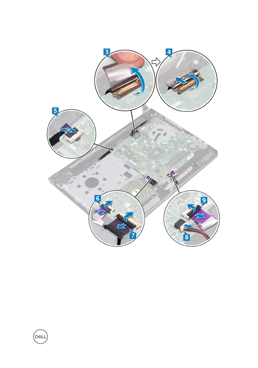 9 Open the latch and disconnect the touch-pad cable from the system board.