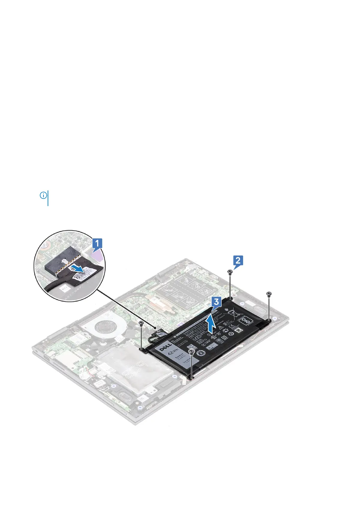 NOTE: Ensure to pull the battery cable from the connector by the head of the connector label, to avoid damage to