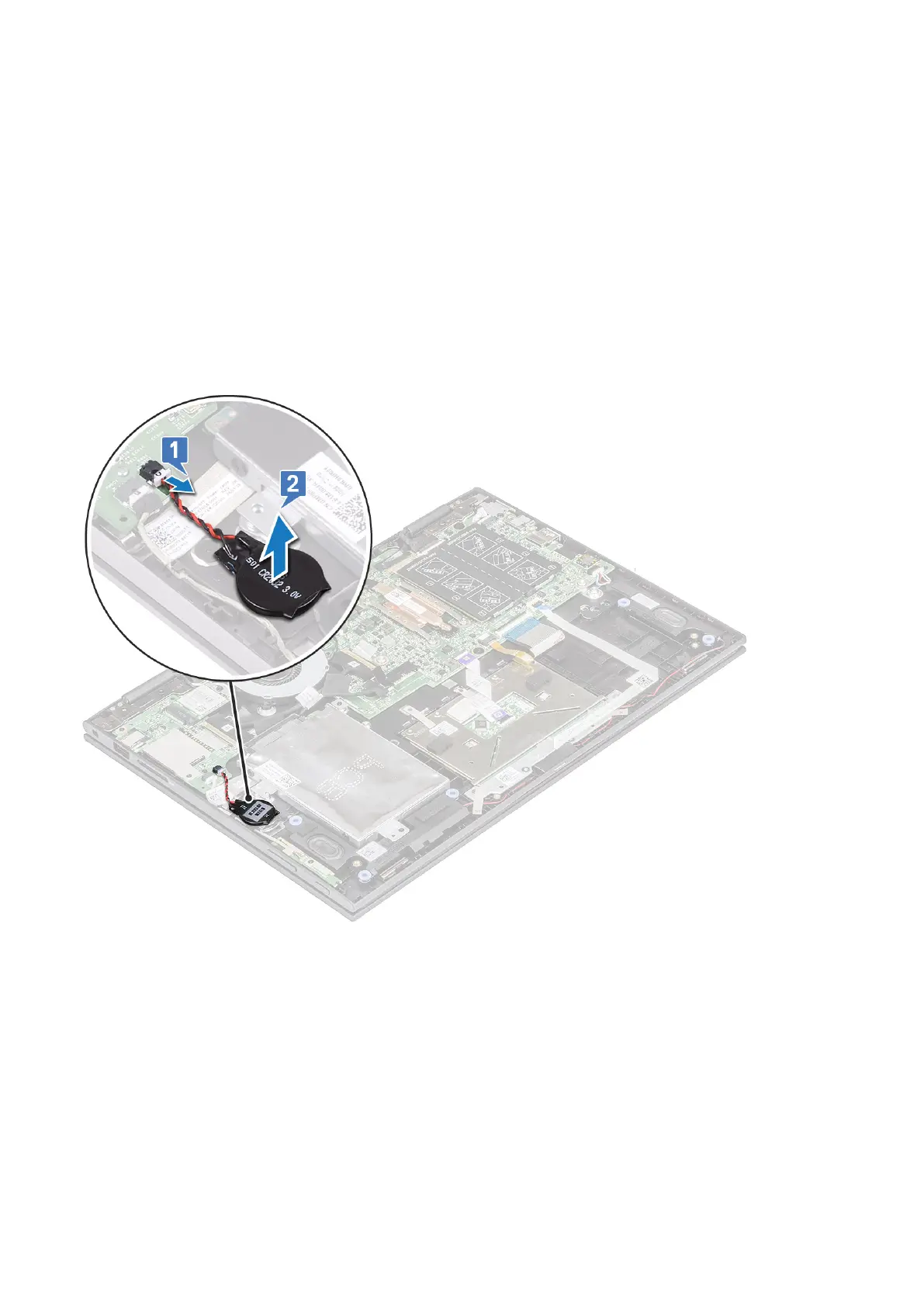 a. Disconnect the coin cell battery from the connector on the system board [1].