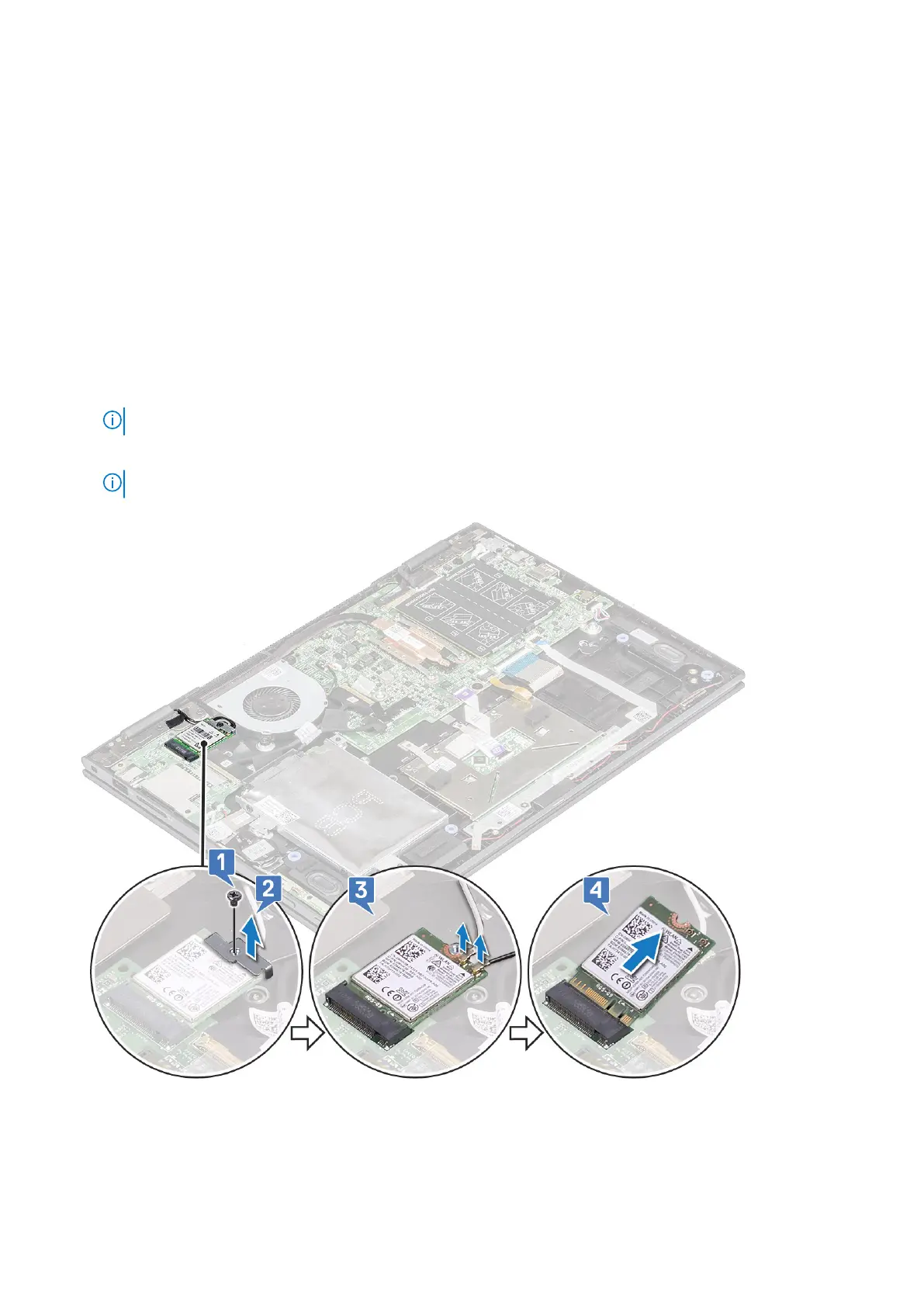 NOTE: Ensure to lift the WLAN card by an angle NOT more than 35°