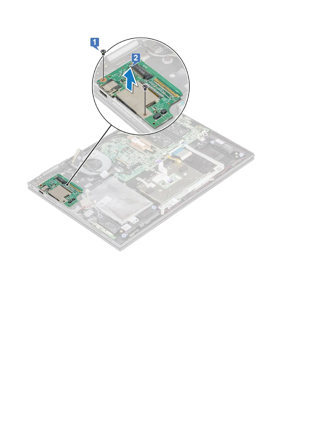 2. Tighten the M2x3.5 screws (2) to secure the I/O board to the laptop.
