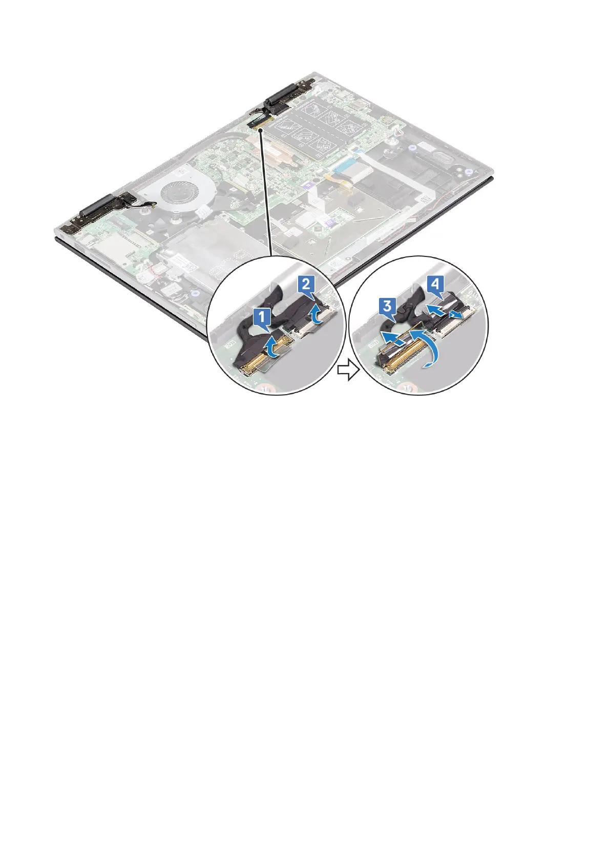 a. Remove the screws that secure the display assembly to the laptop chassis [1].