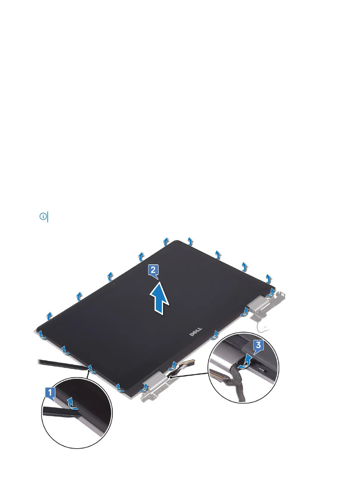a. Using a plastic scribe, pry the display cover from the edges to release it from the display assembly [1].