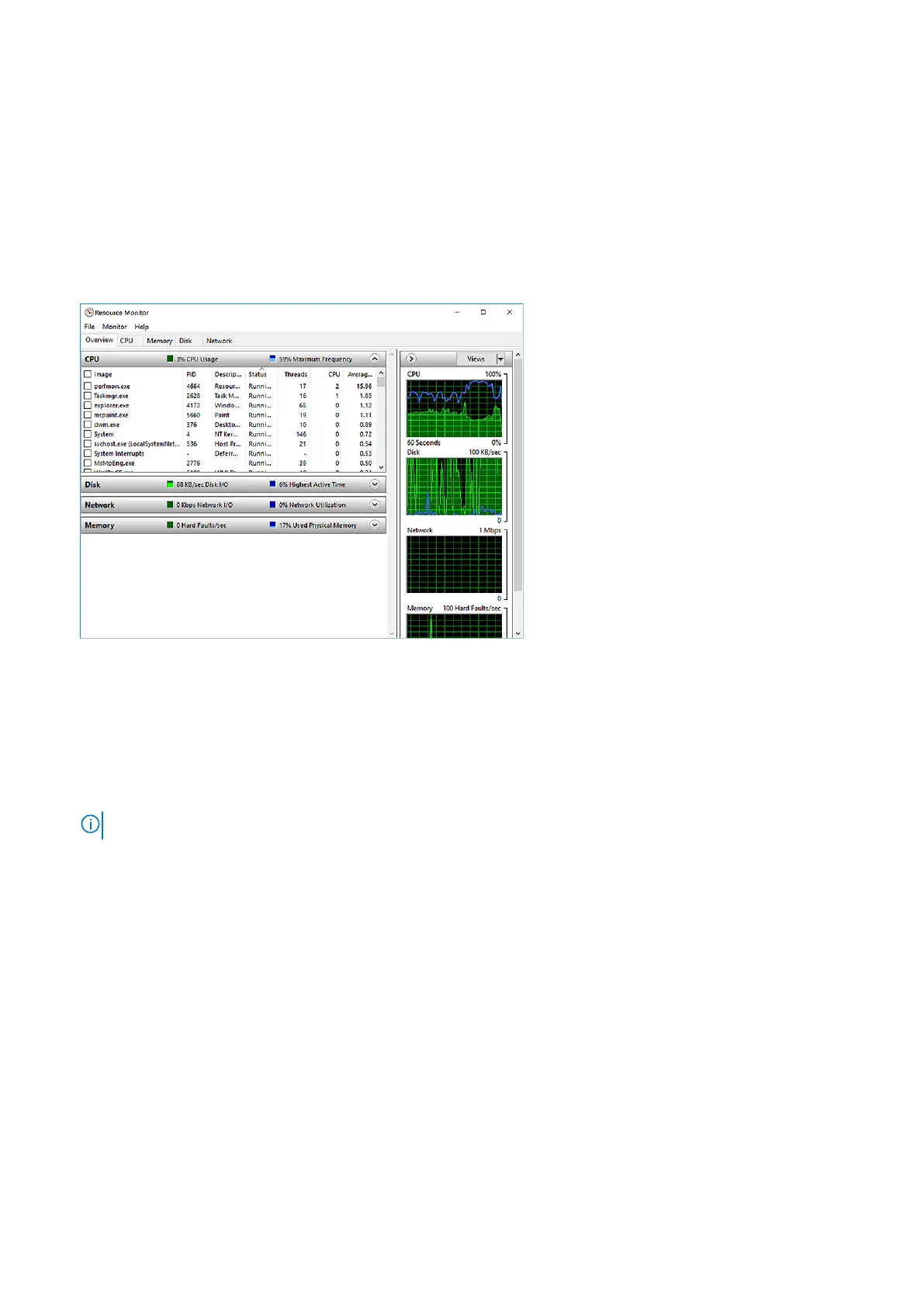 Verifying the processor usage in Resource Monitor