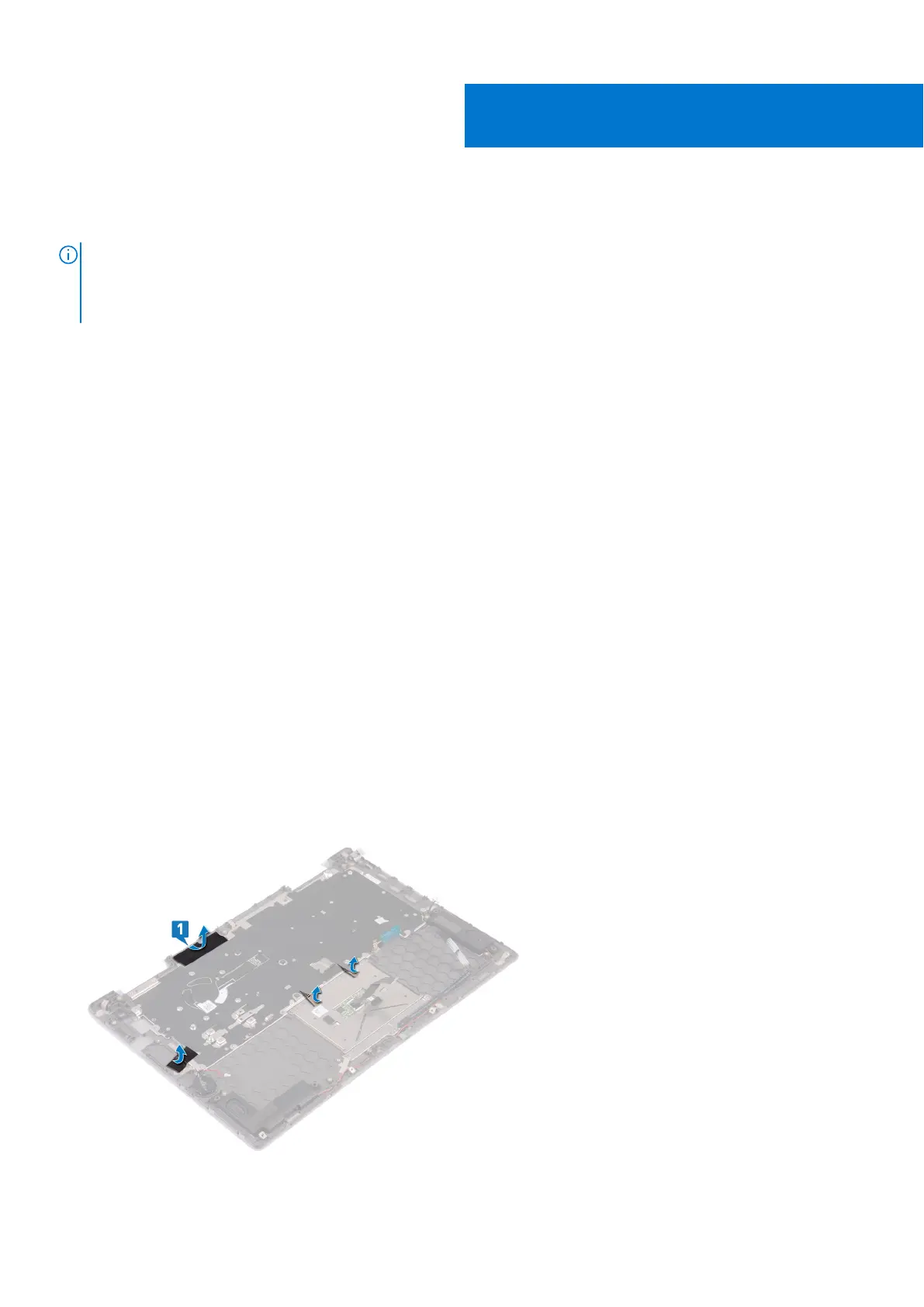 1. Peel off the tapes that secure the keyboard shield to the palm-rest assembly.
