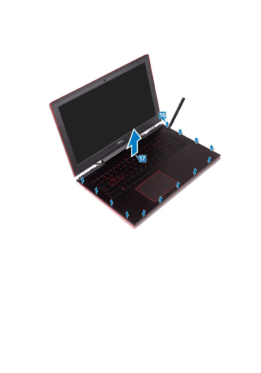 17 Lift the palm-rest assembly, along with the display assembly, o the computer
