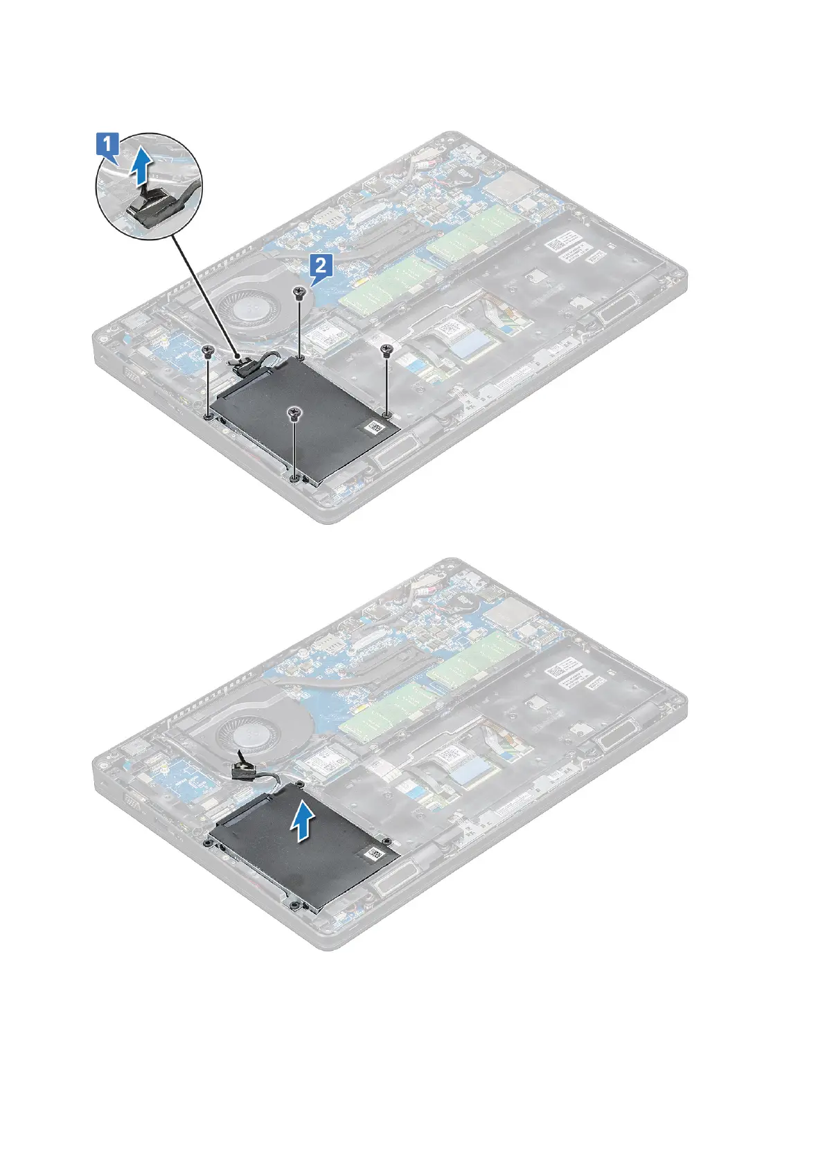 a. Disconnect the hard drive cable from the connector on the system board [1].