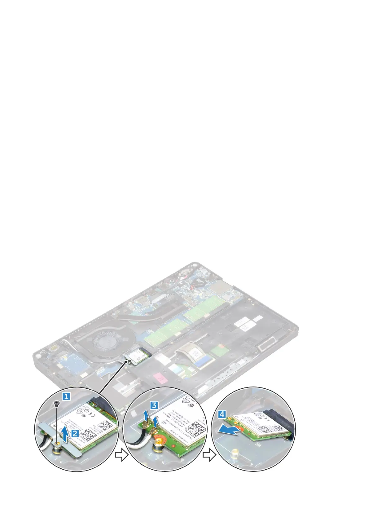 d. Lift the WLAN card away from the connector [4].