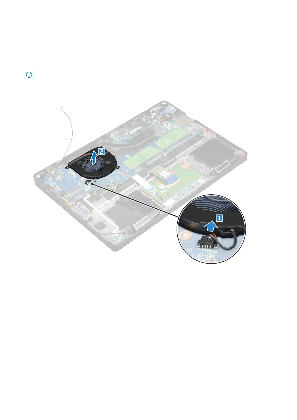 a. Disconnect the system fan cable from the connector on the system board [1].