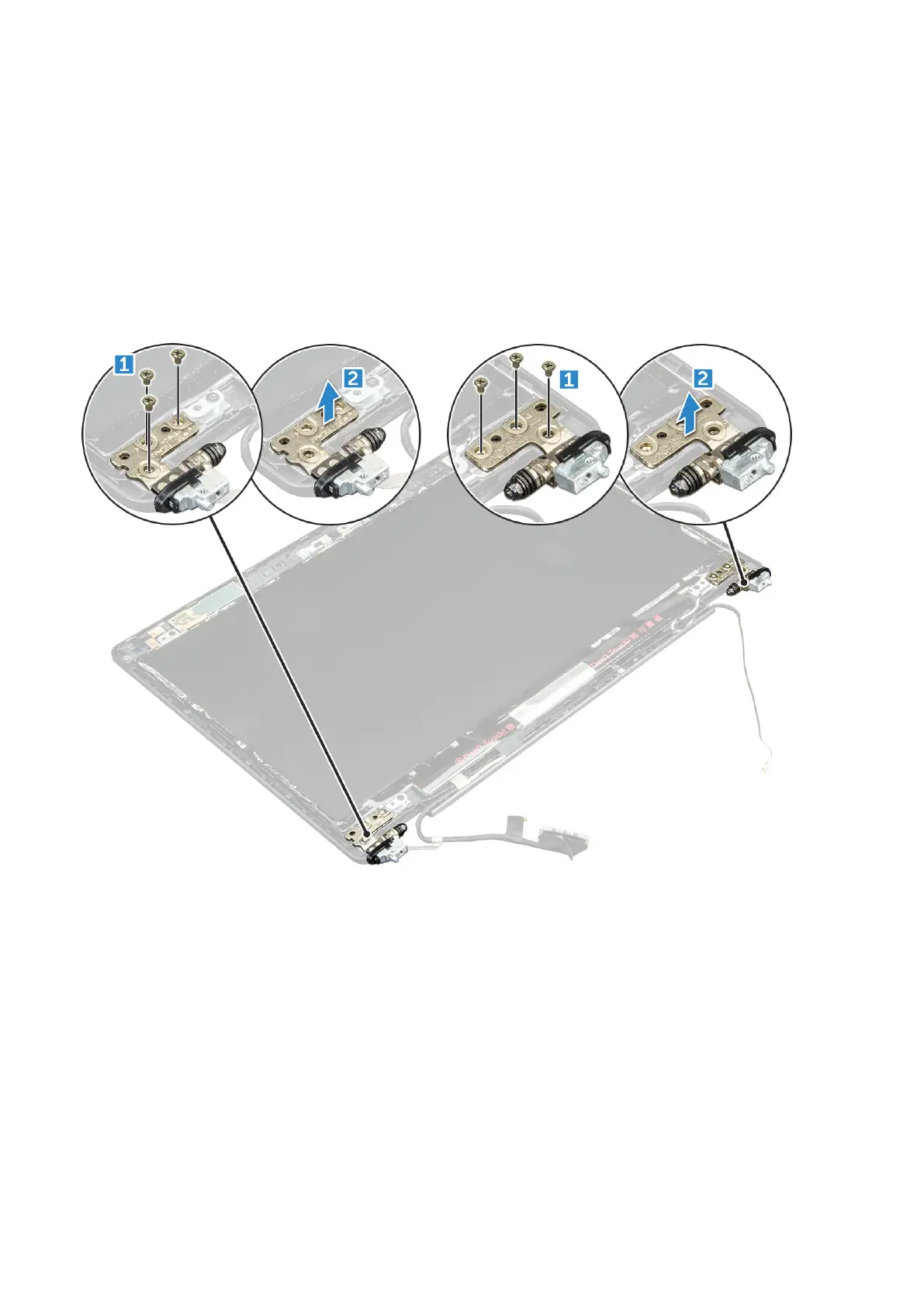 a. Remove the M2.5*3 screws that secure the display hinge to the display assembly [1].