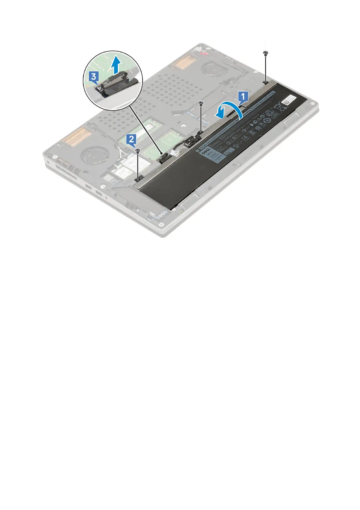 b. Replace the 2 (M2.5x3.0) screws to secure the battery to the system [2].