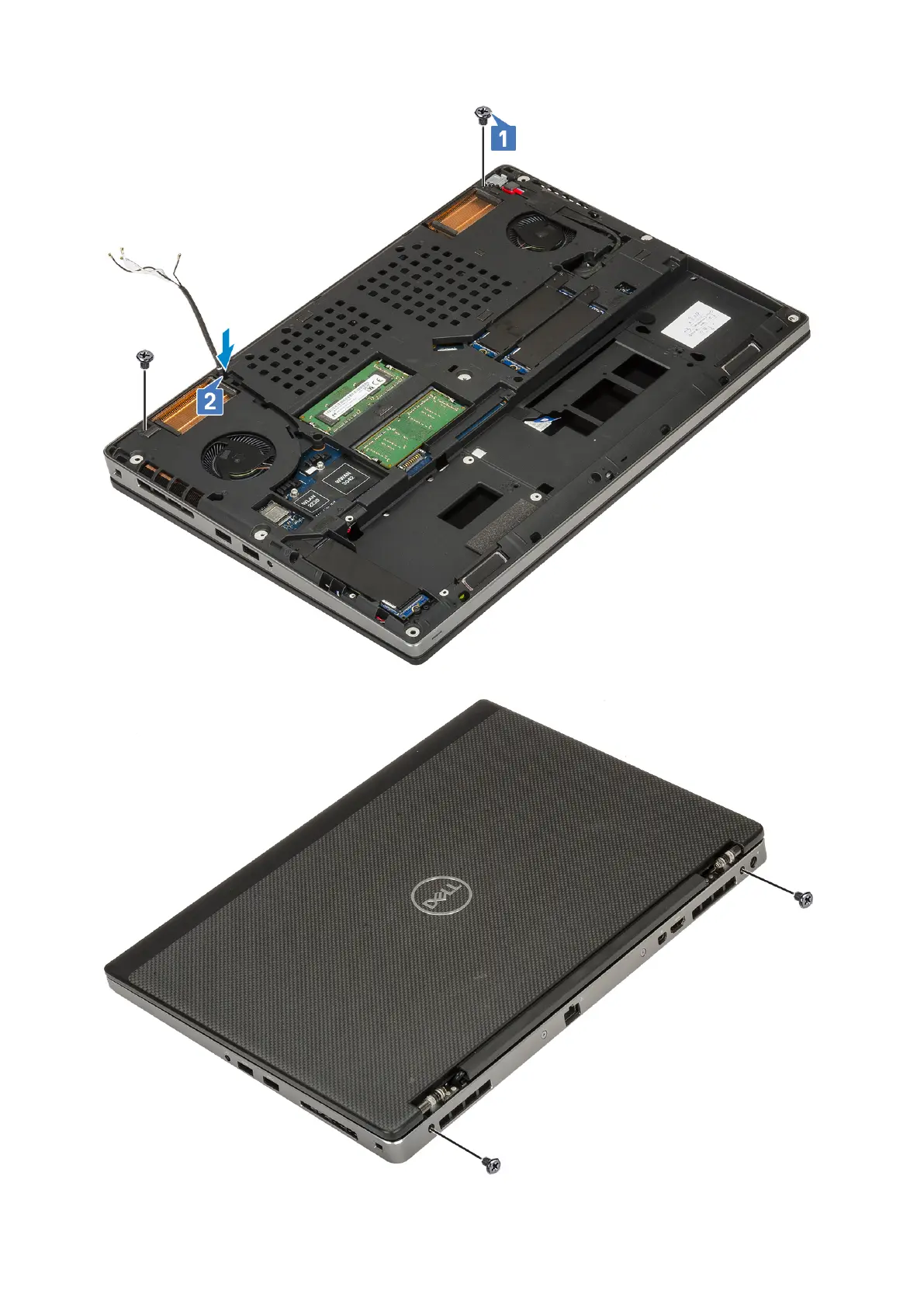c. Remove the 2 (M2.5x6.0) screws at the rear of the system that secures the display assembly in place.